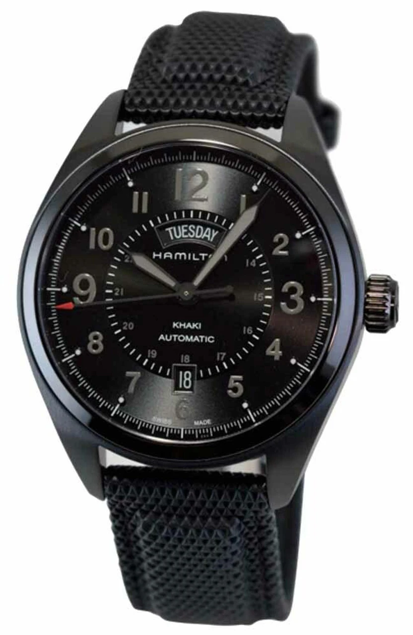 - Black dial with luminous hands and Arabic numeral hour markers